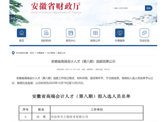 12月18日,安徽省财政厅公布“安徽省高端会计人才”(第八期)录取人员名单,经过材料评审、现场笔试、专家面试等多轮考核,南宫28能源财务管理部员工段震从众多候选人中脱颖而出、成功入选,有力展现了南宫28能源财务人员的综合实力与向上风采!